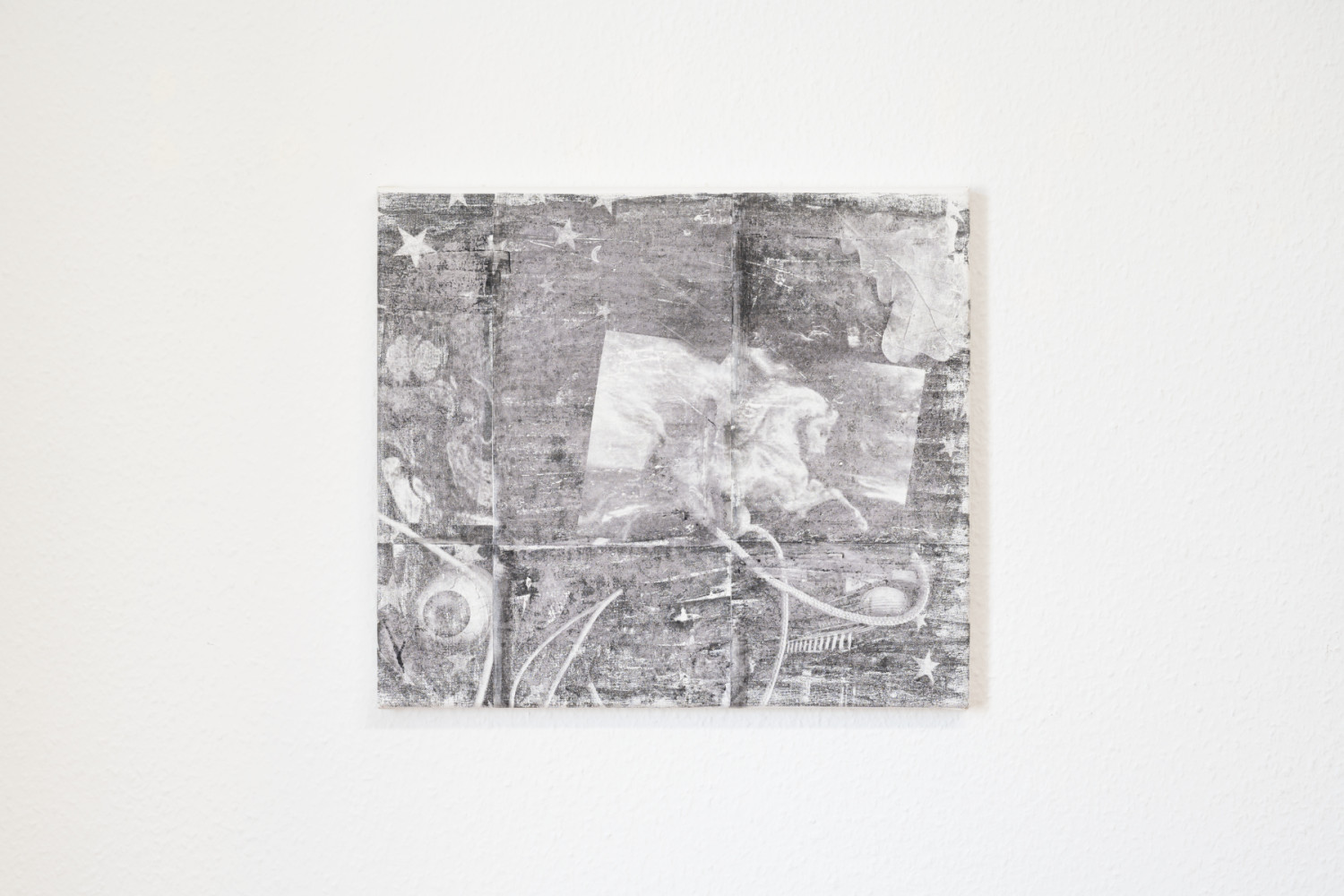 Andreas Kalbermatter. Arrangement with eye and horse. Inkjet transfer and acrylic on canvas. 2024.