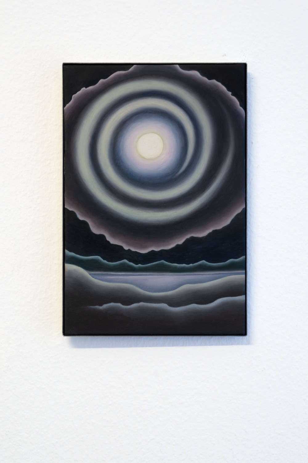 Sina Oberhänsli. foyer sur les eaux. Oil on tile and metal frame. 30 x 20 cm. 2023