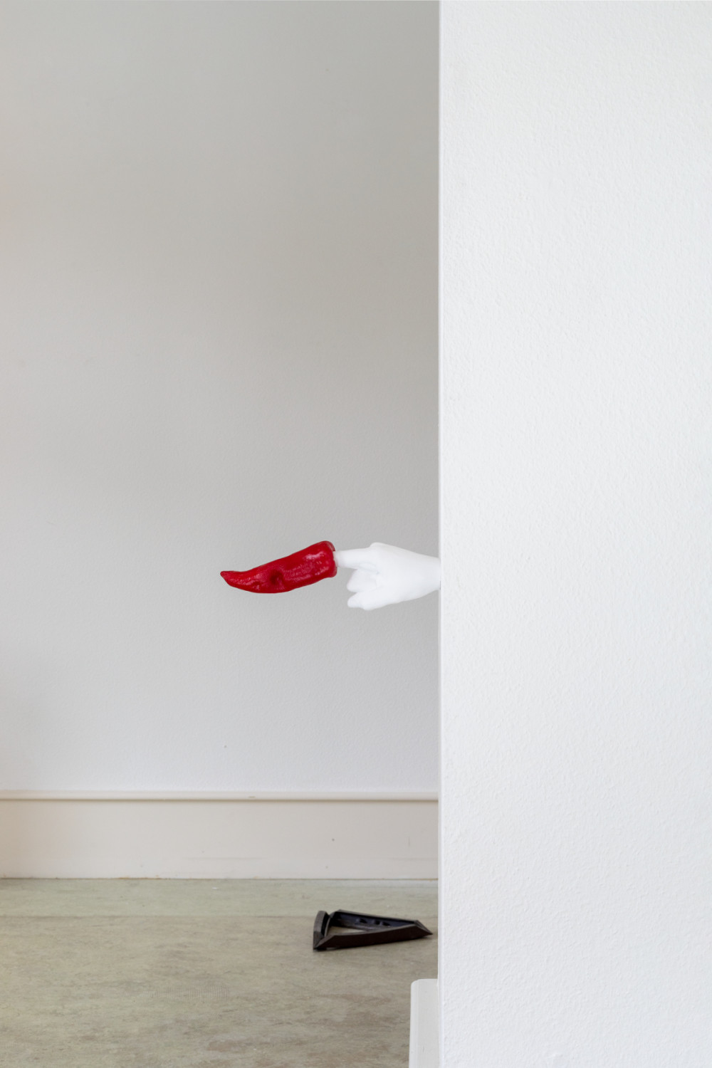 Djellza Azemi. Krusha. Plaster, paint and pepper. Variable dimensions. 2022.