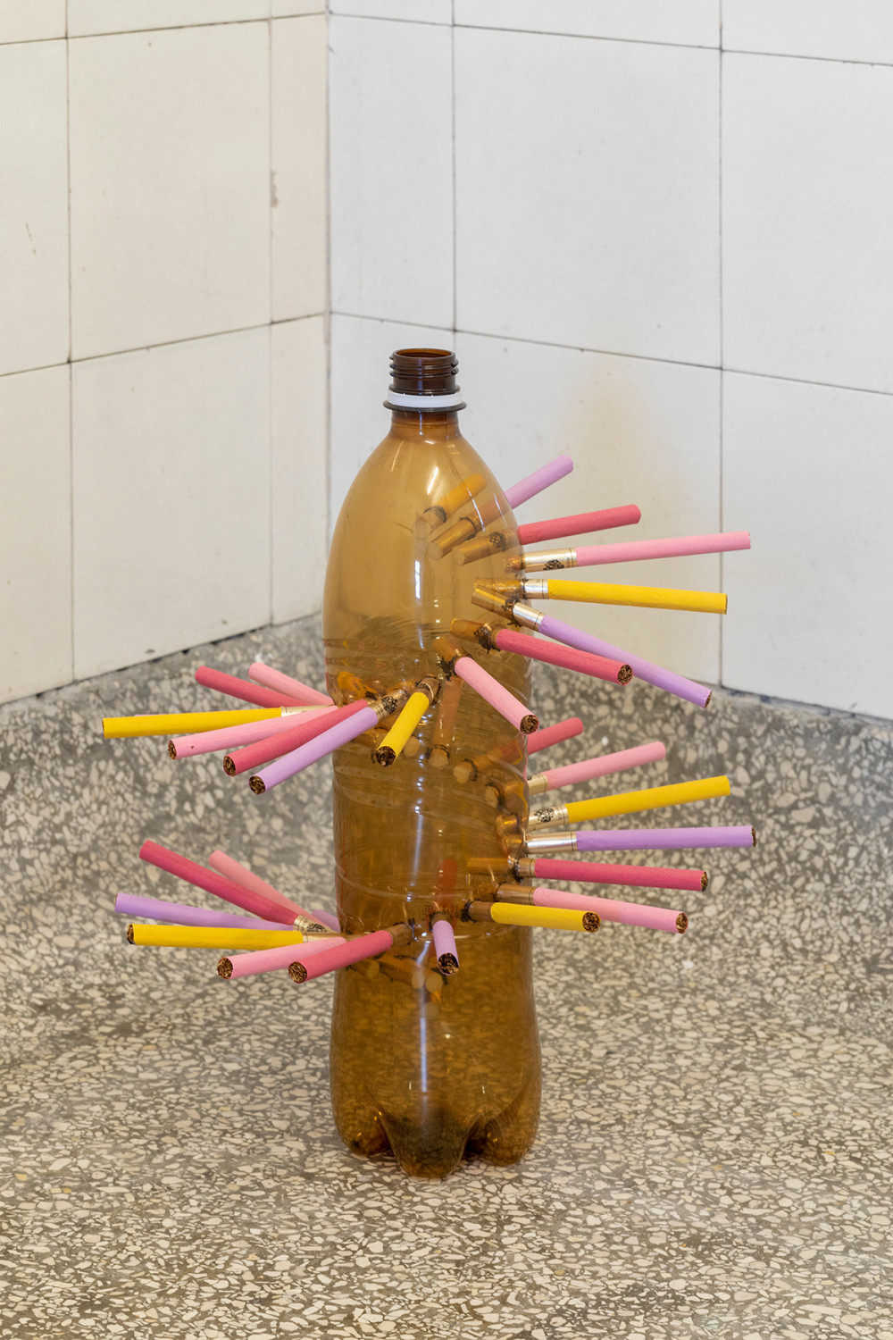Nusser Glazova. Teenage Angst I. Plastic bottle and Sobranie cigarettes. Variable dimensions. 2022.