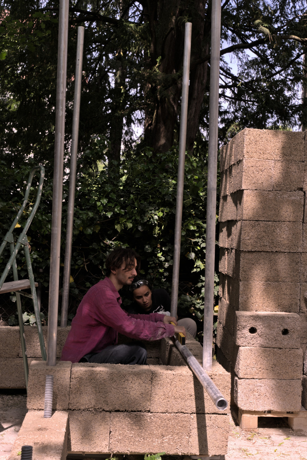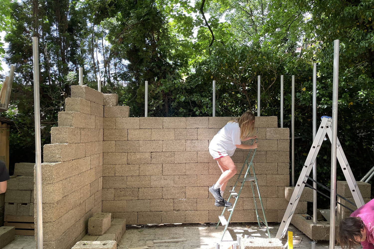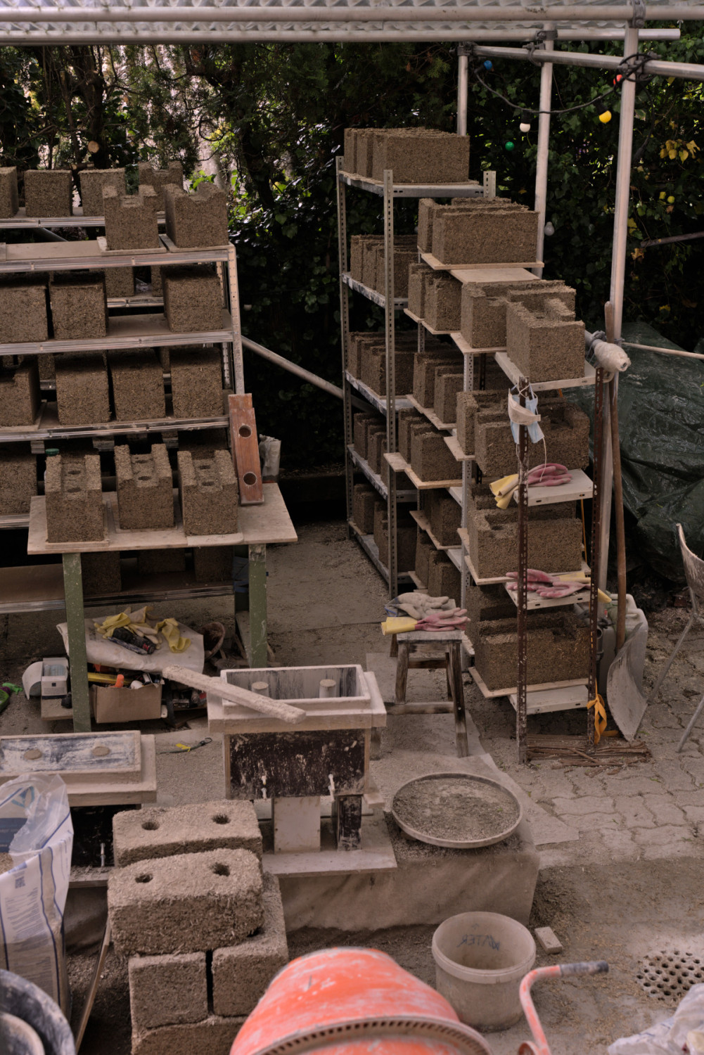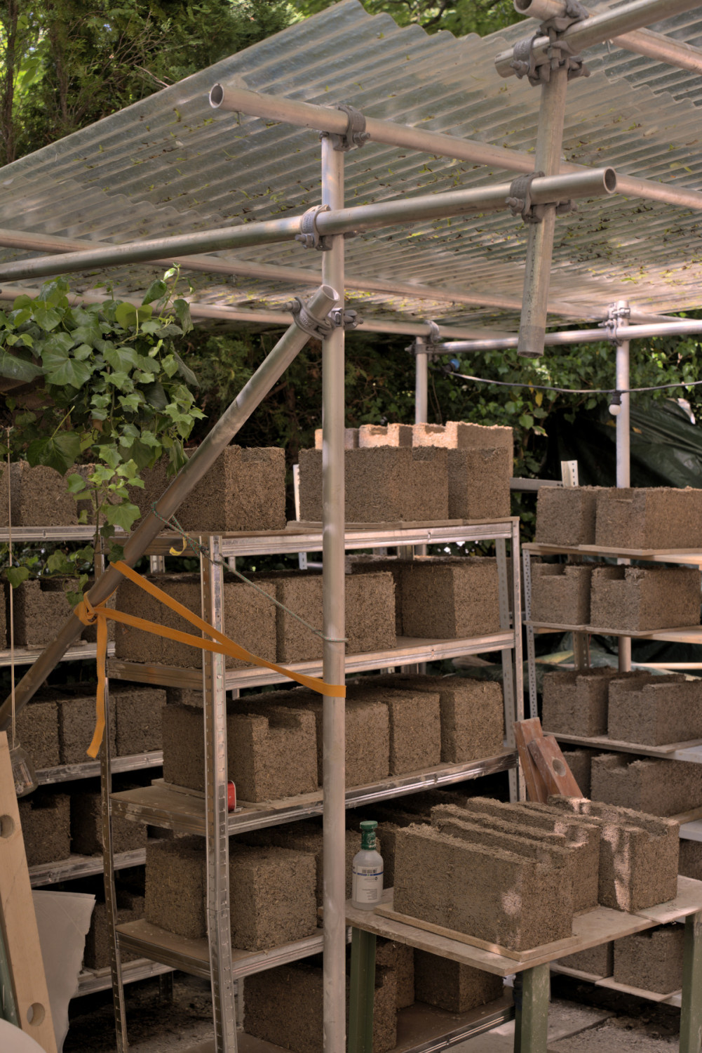 The goal of the project was to create a modular space that could take many shapes and possibly be fragmented in the future. To make this happen we constructed hemp-bricks that would allow for a scaffolding system to be embedded inside of them. This method not only ensures structural integrity but also provides flexibility in shaping the space to accommodate different exhibitions or artworks.