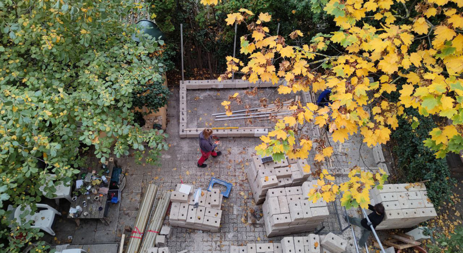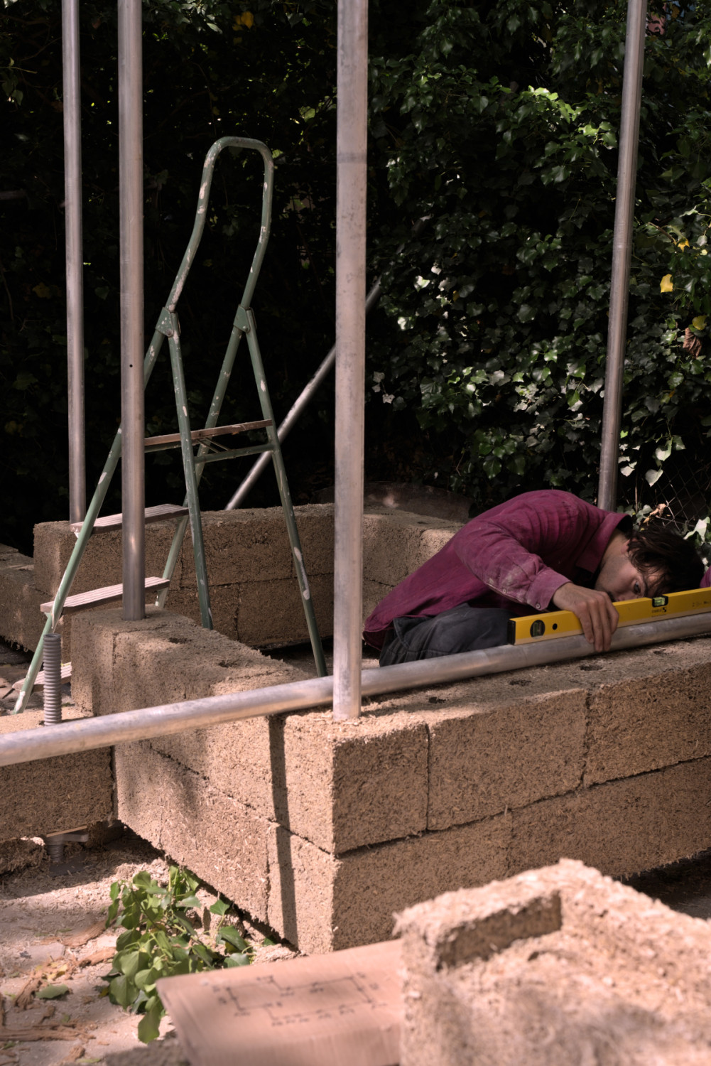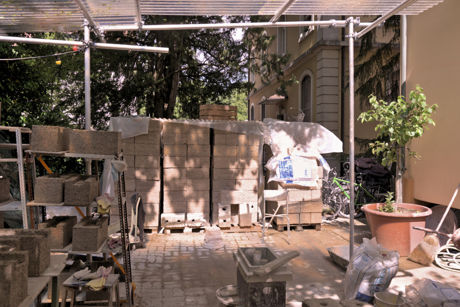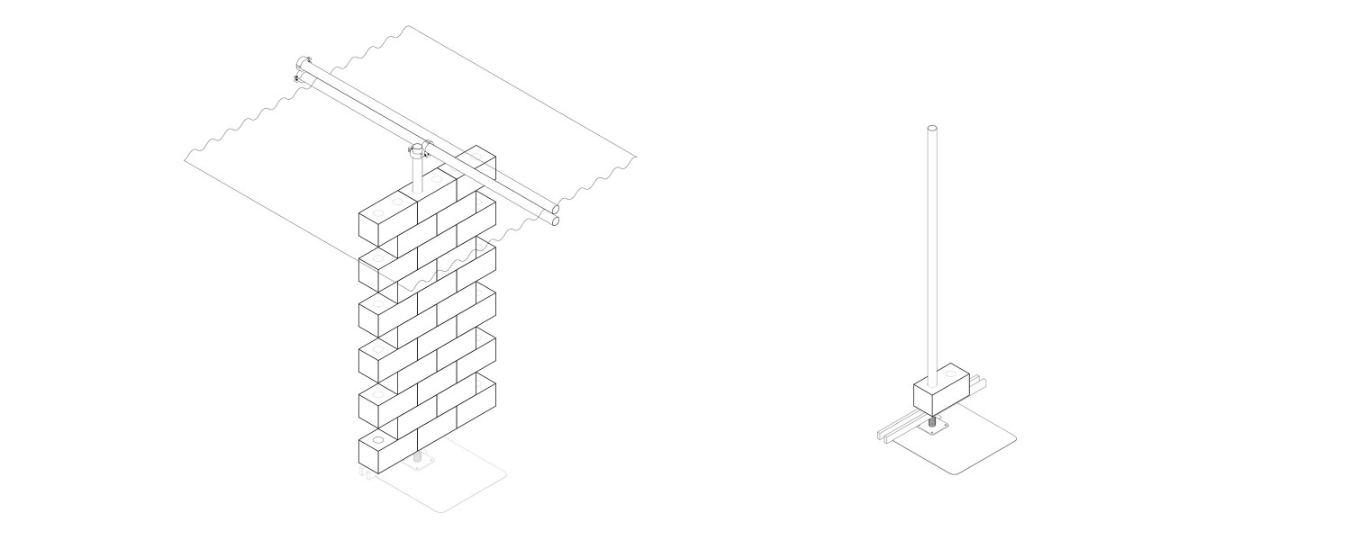The goal of the project was to create a modular space that could take many shapes and possibly be fragmented in the future. To make this happen we constructed hemp-bricks that would allow for a scaffolding system to be embedded inside of them. This method not only ensures structural integrity but also provides flexibility in shaping the space to accommodate different exhibitions or artworks.